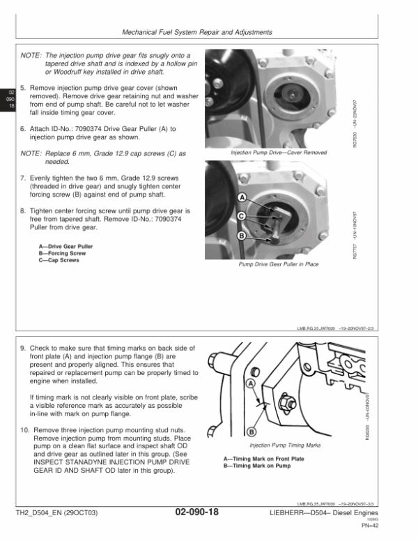 This manual (TH2_D504) covers only the mechanical fuel system. It is one of three volumes on LIEBHERR — D504 diesel engines. The following two companion manuals cover the base engine and electronic fuel system repair, operation and diagnostics: