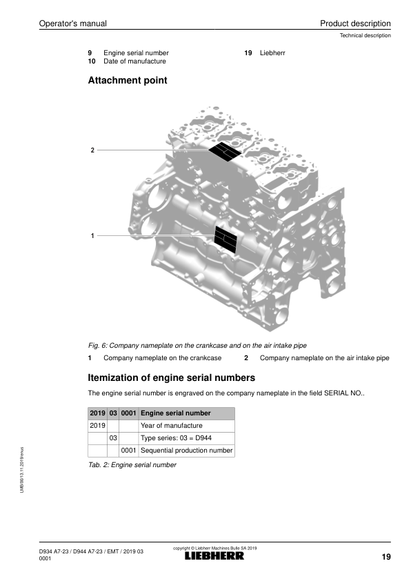 Liebherr D934 A7–23, D944 A7–23 EMT (Electronic-Mechanical Turbo) Diesel Engine Operators Manual
