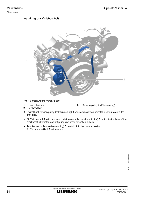 Liebherr D936 A7-00, D946 A7-00 LWE (Electronic Common Rail) Diesel Engine Operators Manual