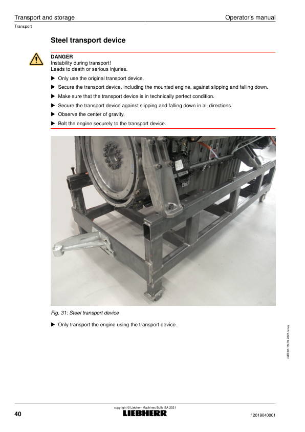 Liebherr D936 A7-00, D946 A7-00 MCC (Mechanical Common Rail) Diesel Engine Operators Manual