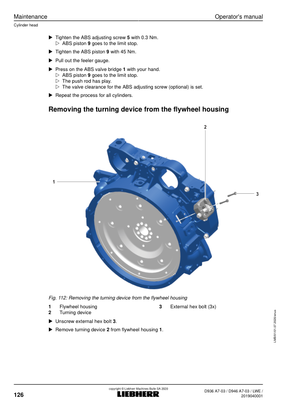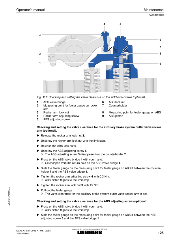1.2.3 Valve clearance, auxiliary braking system (ABS)