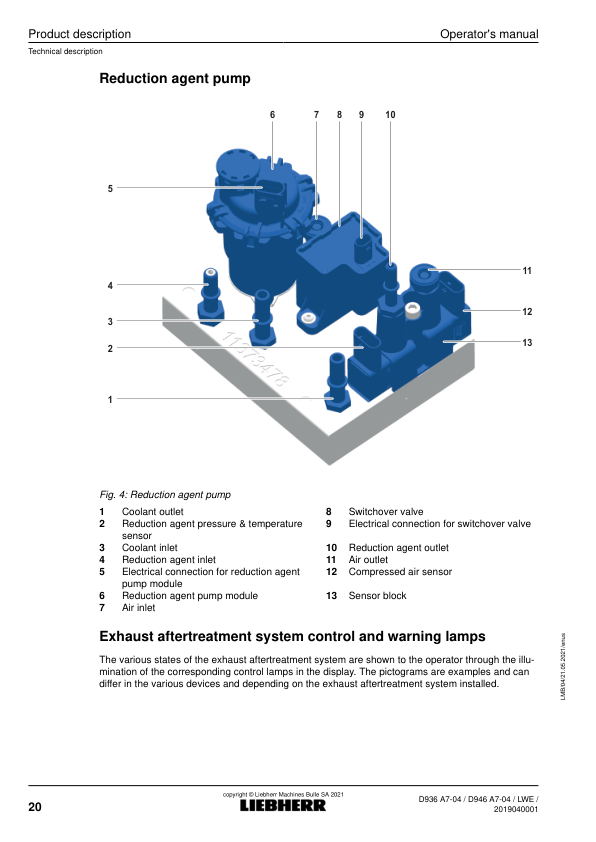 Liebherr D936 A7-04, D946 A7-04 LWE (Electronic Common Rail) Diesel Engine Operators Manual