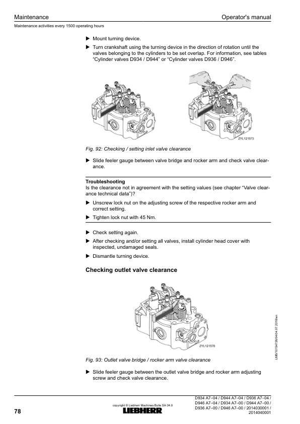 Liebherr D944 A7–00, D936 A7–00, D946 A7–00 Engine Operators Manual
