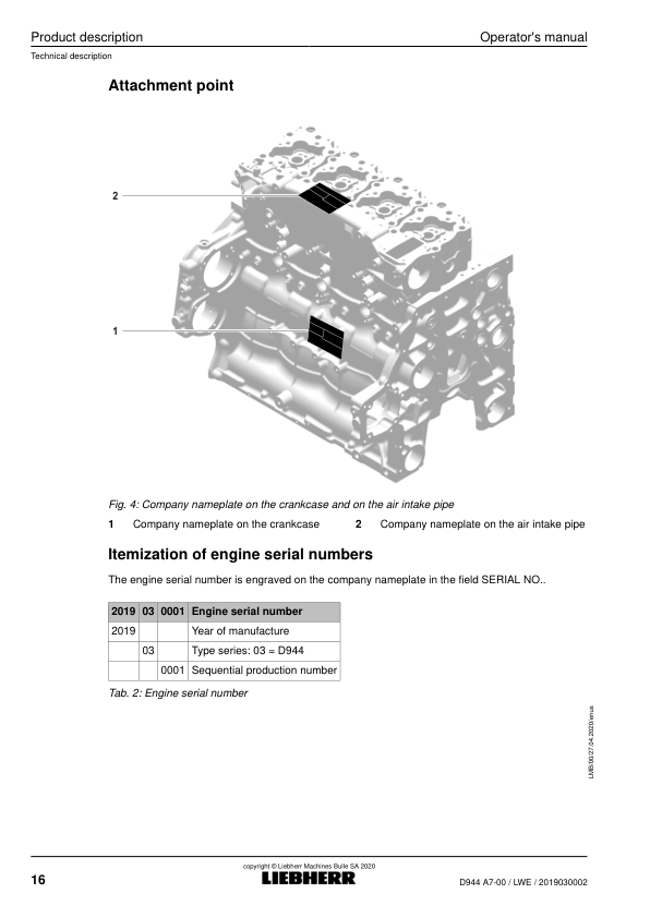 Liebherr D944 A7-00 LWE (Electronic Common Rail) Diesel Engine Operators Manual