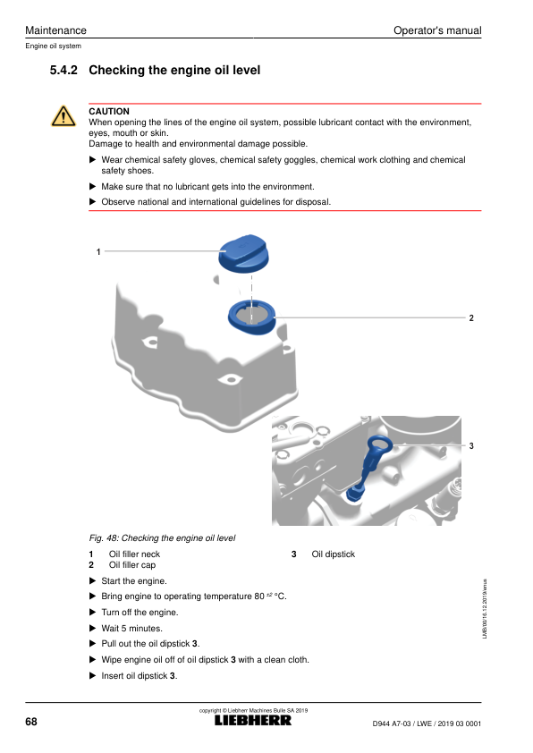 Liebherr D944 A7-03 LWE (Electronic Common Rail) Diesel Engine Operators Manual