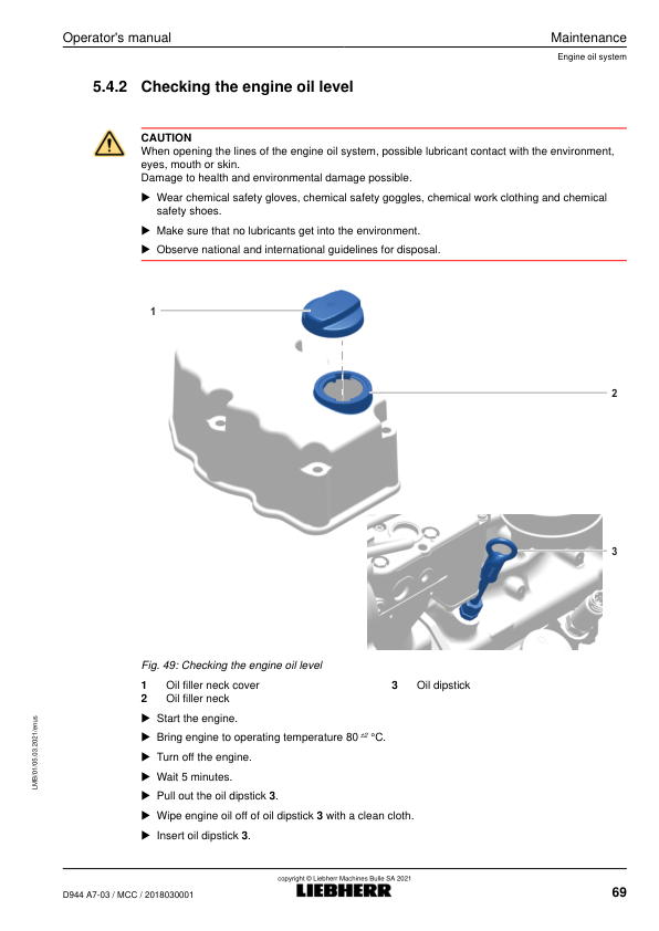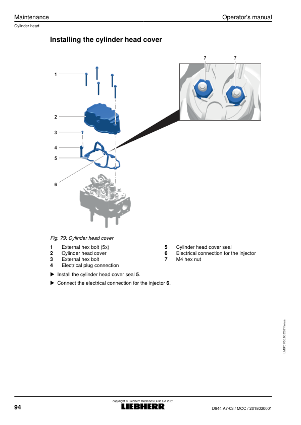 Liebherr D944 A7-03 MCC (Mechanical Common Rail) Diesel Engine Operators Manual