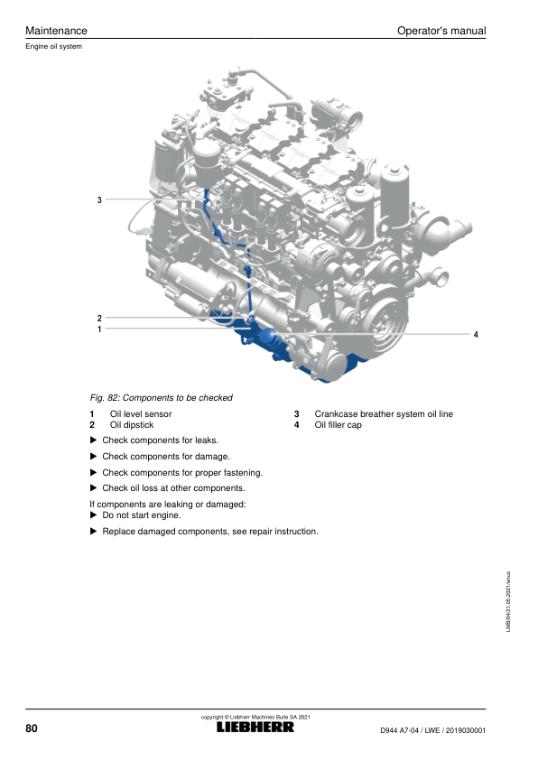 Liebherr D944 A7–04 LWE (Electronic Common Rail) Engine Operators Manual