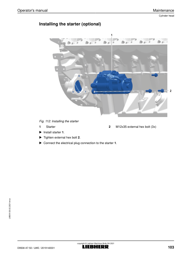 Liebherr D9508 A7-50 LWE (Electronic Common Rail) Diesel Engine Operators Manual
