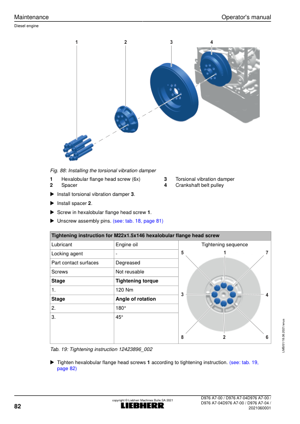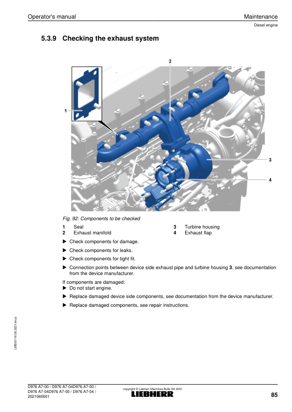 Liebherr D976 A7-00, D976 A7-04 Diesel Engine Operators Manual