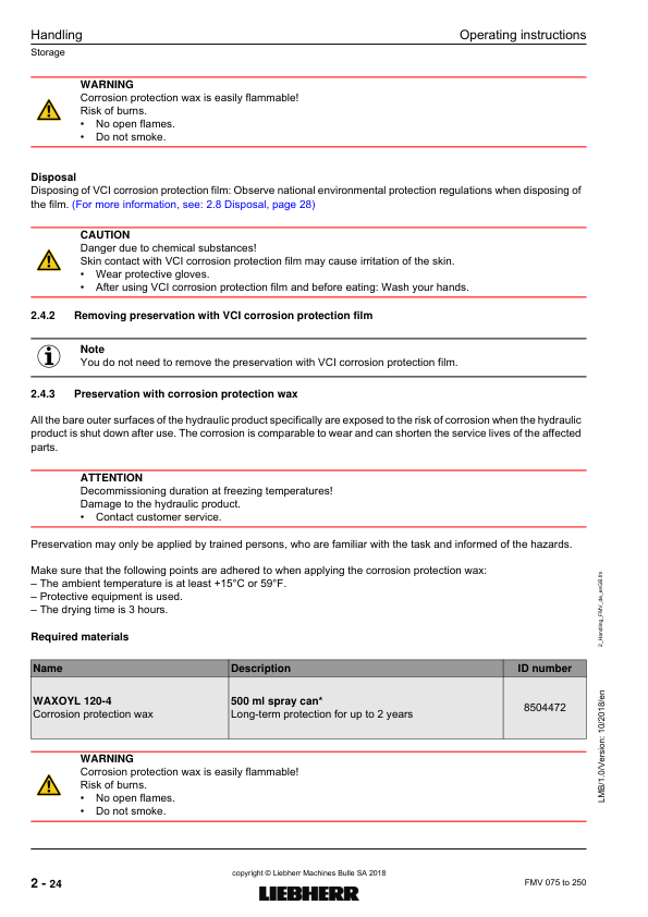 ย ย ย ย ย ย ย ย โข 2.4.3 Preservation with corrosion protection wax