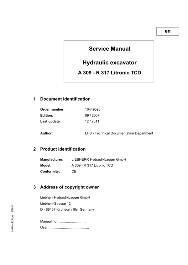 Table of Content – Liebherr Service Repair Manual – R 313 Type 1038
