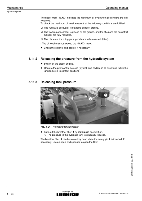• 3.102 Maintenance tasks for hydraulic system (Page 589)