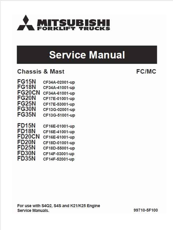 Mitsubishi FG15N, FG18N, FG20N, FG20CN Forklift Service Manual