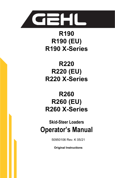 Gehl R190, R220, R260 Skid Steer Loader Service Repair Manual
