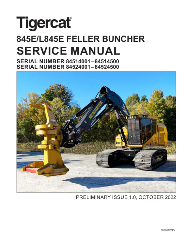 - Tigercat 845E, L845E Feller Buncher Repair Service Manual – 710 Pages