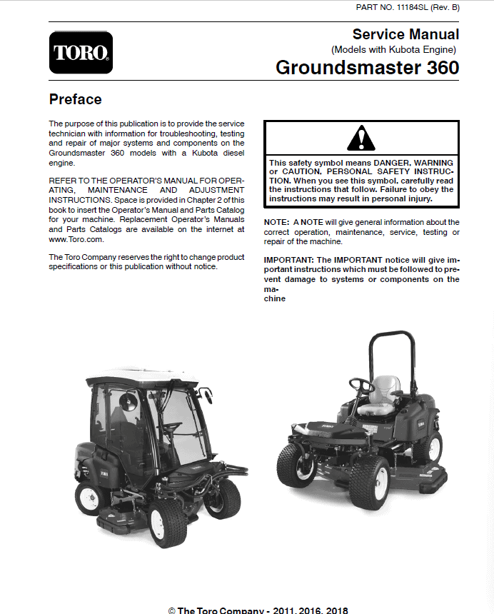 Toro Groundsmaster 360 (with Kubota Engine) Service Repair Manual