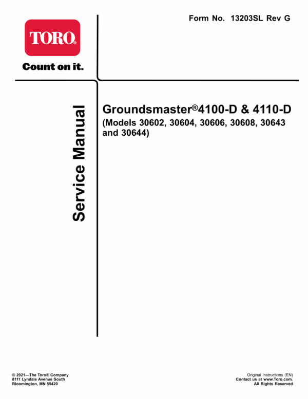 - Model: Groundsmaster 4100-D, 4110-D (Model 30602, 30604, 30606, 30608, 30643, 30644)
