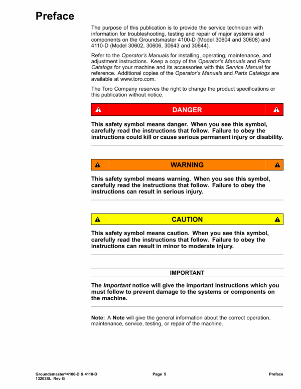Table of Content – Groundsmaster 4100-D, 4110-D (Model 30602, 30604, 30606, 30608, 30643, 30644)