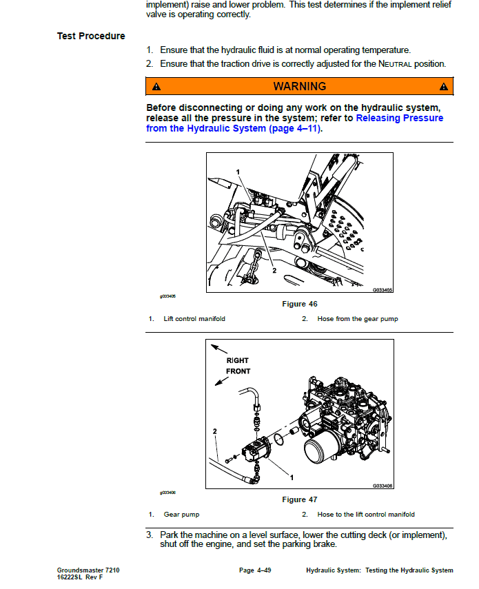 - Testing the Implement Relief Pressure (Using Pressure Gauge)