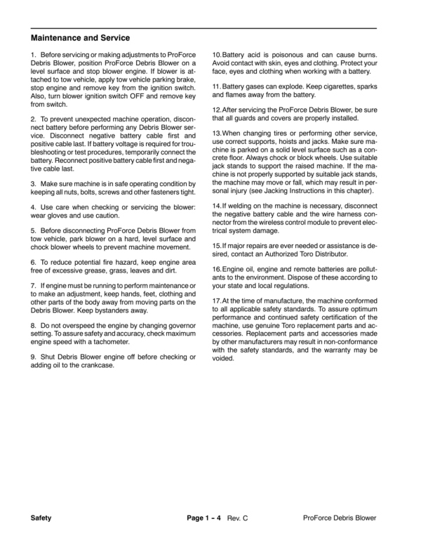 Toro Pro Force Debris Blower (Models 44538, 44539, 44542, 44551) Service Repair Manual