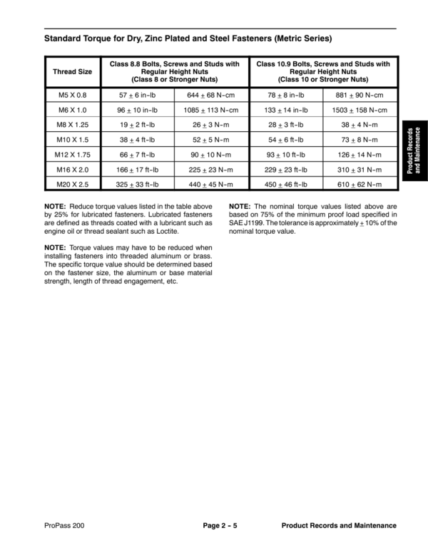 • Standard Torque for Dry, Zinc Plated and Steel Fasteners (Metric Series)