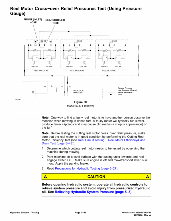 - Reel Motor Crossโover Relief Pressures Test (Using Pressure Gauge)