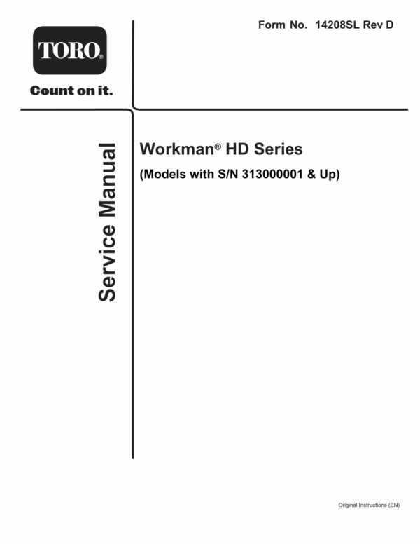 - Workman HDX–D (Serial Numbers314000001 to 401420000)